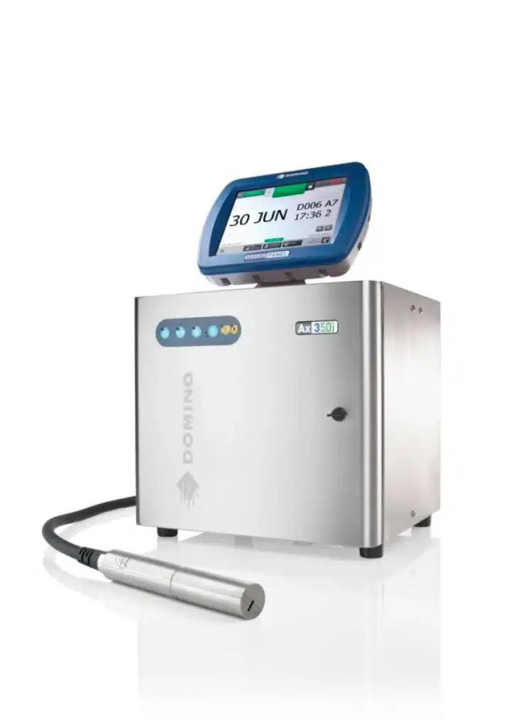 Dominos inkjet-printer Ax350i er udstyret med en ny generation Ink drop-teknologi kaldet i-Pulse, der kontrollerer den individuelle blækdråbeformation og placering. i-Pulse medfører derfor både besparelser i blækforbruget og sikrer en høj printkvalitet. Printeren integreres let i eksisterende produktionslinjer selv efter komplicerede efterbehandlingsprocesser.